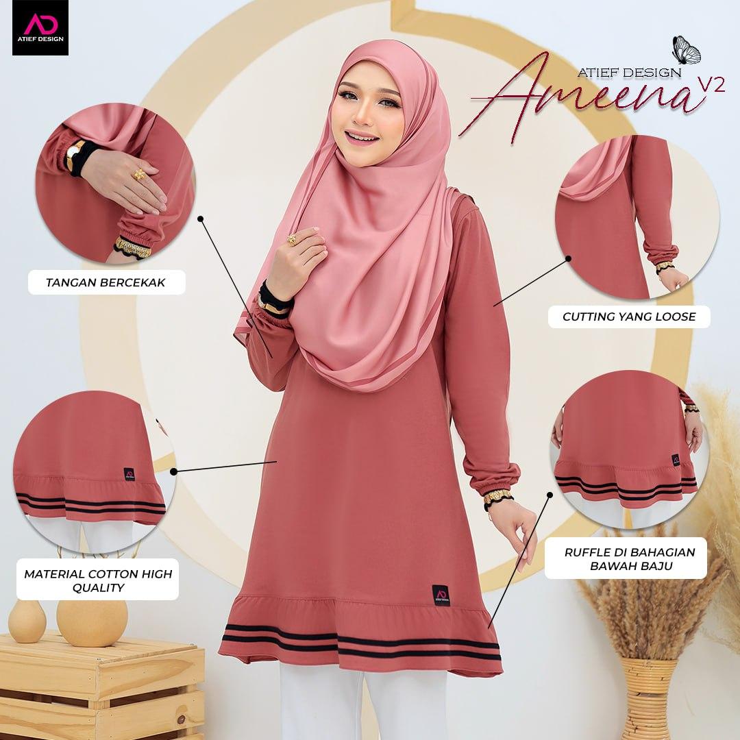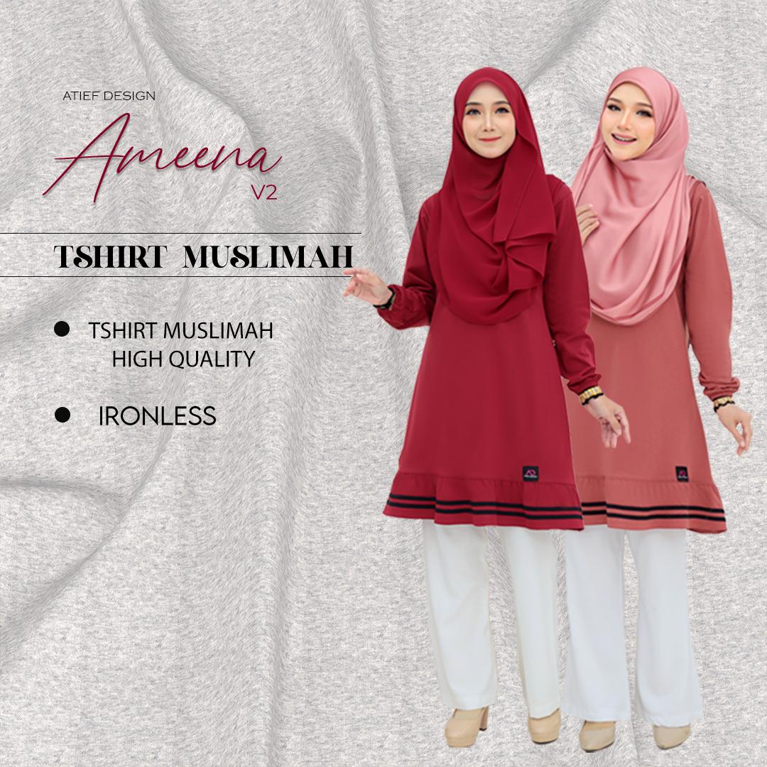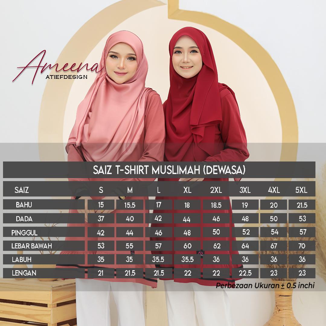 ATIEF DESIGN Signature Series: AMEENA - Premium TC Cotton Muslimah T-Shirt | Elegan & Selesa untuk Wanita Moden | Baju Muslimah sesuai untuk daily wear dan bersukan, S to 3XL
